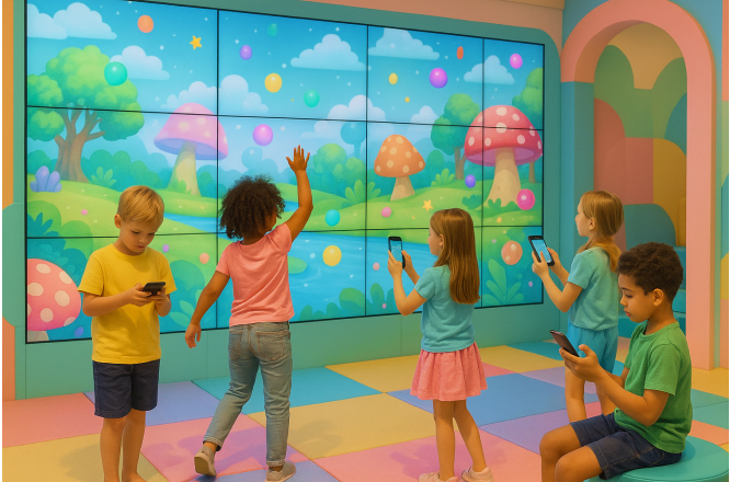 Imagine una experiencia interactiva en un área de juegos interior tan inmersiva que hará que sus clientes regresen una y otra vez. ¿Qué es posible ahora con aplicaciones de video wall y los juegos involucrarán a toda la familia en el juego interactivo. Con la incorporación de una aplicación personalizada para teléfonos inteligentes, la interacción puede continuar mucho después de la primera visita del cliente.