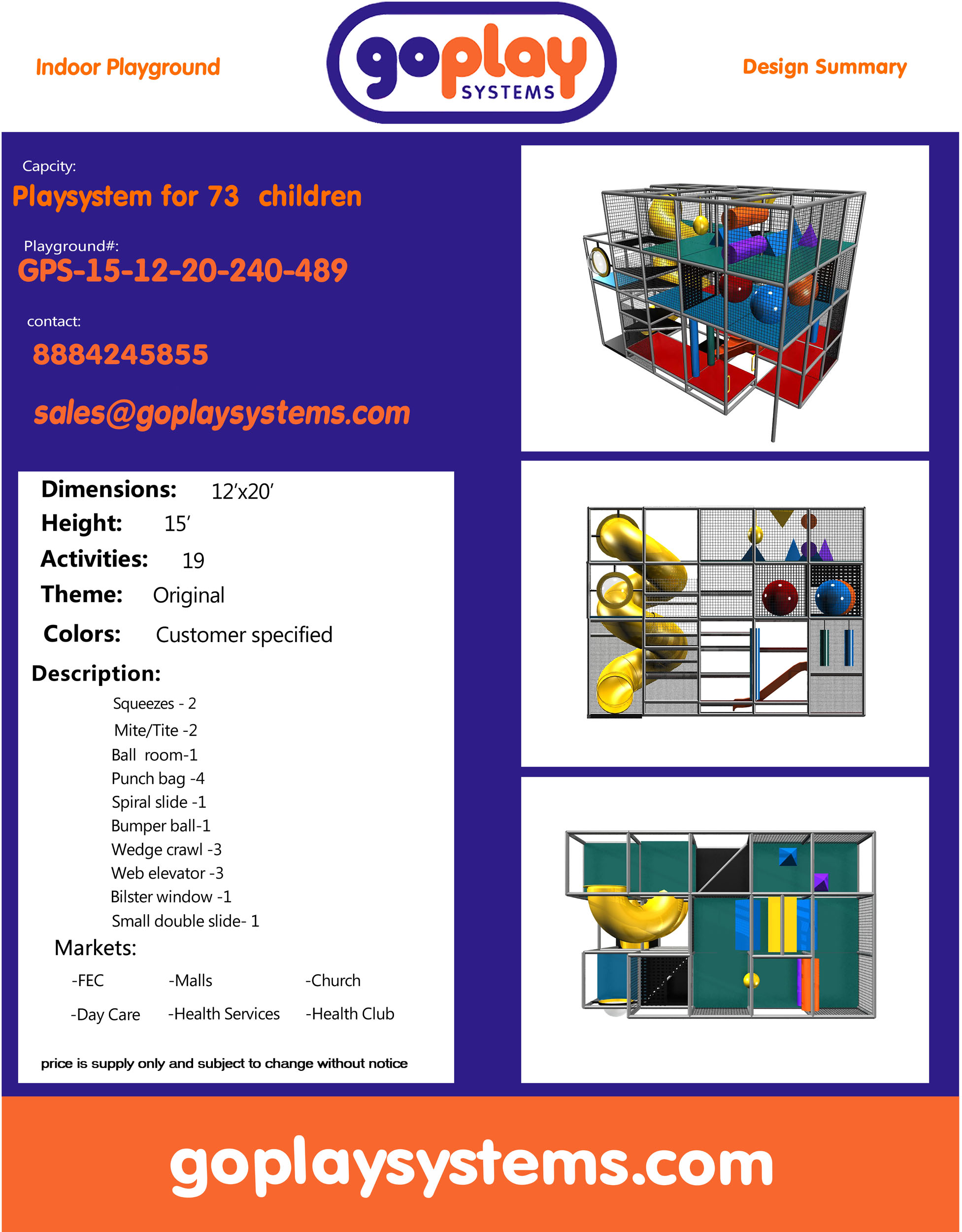 Compre equipo de juegos para interiores GPS489 – 15 pies de alto x 12 pies de ancho x 20 pies.