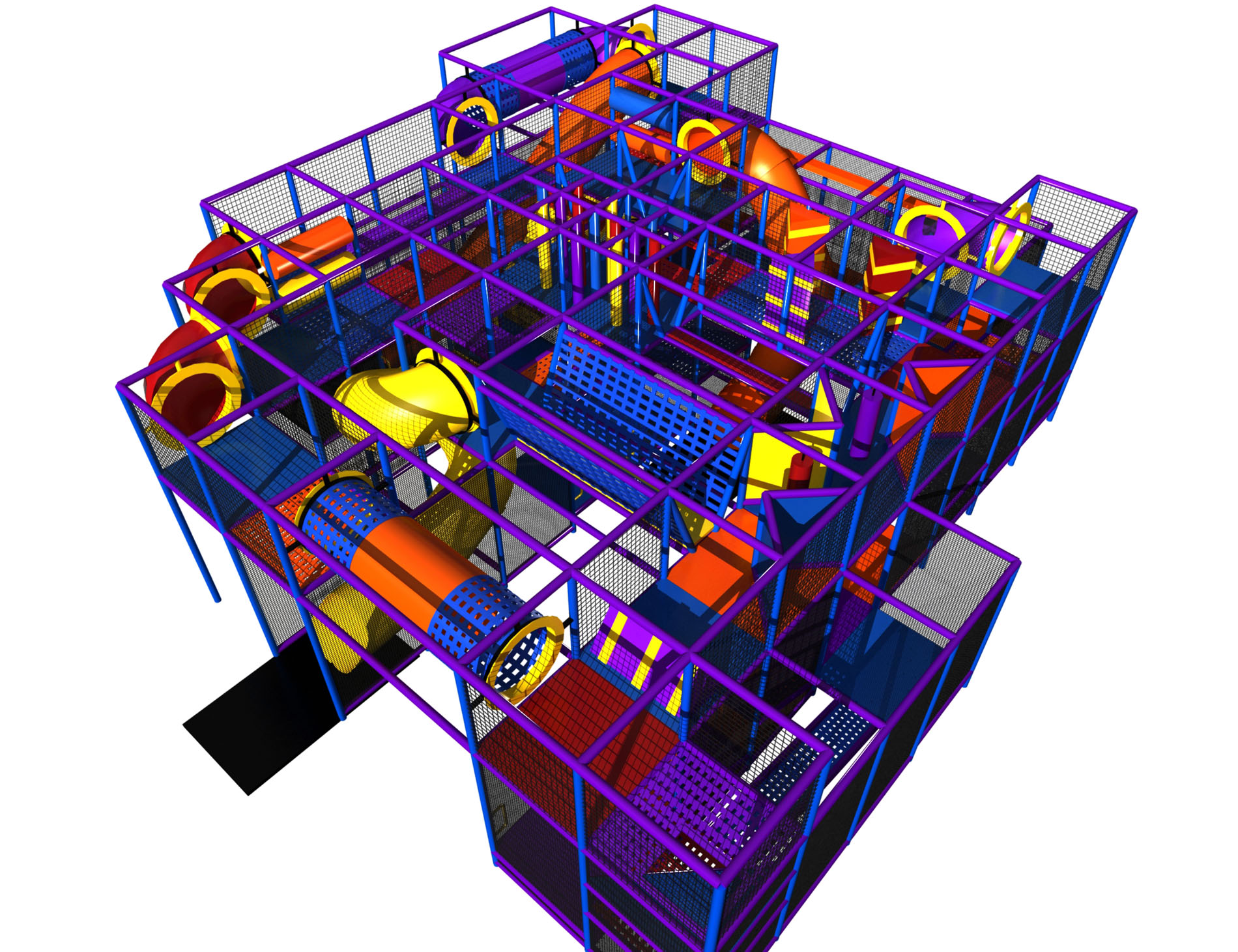 El parque infantil interior GPS74 es un sistema de juego interior personalizado para niños de tres a doce años. La unidad de juego blando mide 11,8 m de ancho por 3,3 m de alto y 11,8 m de largo. El espacio mínimo requerido para este equipo de juego infantil es de aproximadamente 13,8 m de ancho, 4,9 m de techo y 13,8 m de largo. Parque infantil interior de gran tamaño.