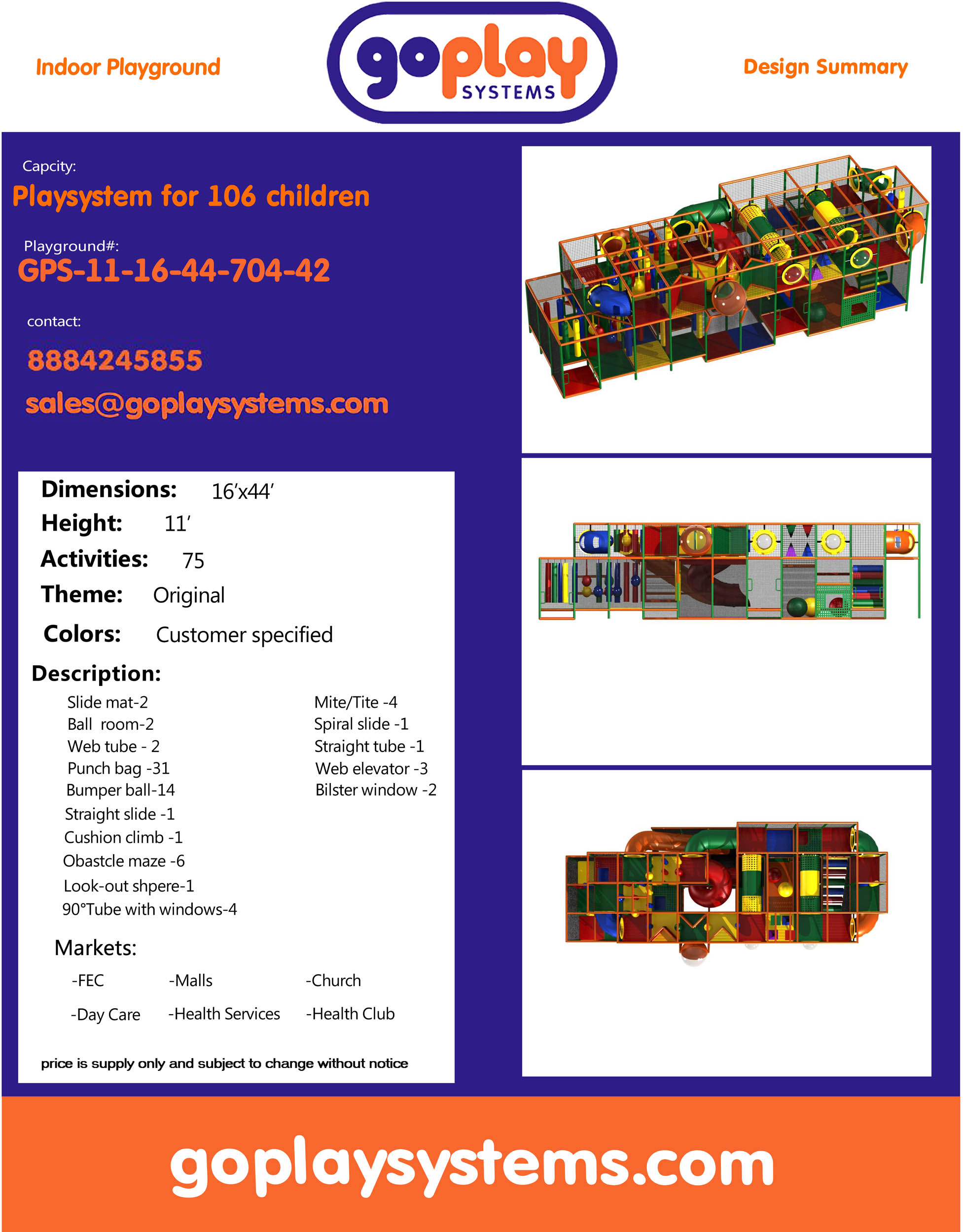 Compre equipo de juegos para interiores GPS42 – (tamaño del sistema de juegos para interiores) 11 pies de alto x 44 pies de ancho x 16 pies.