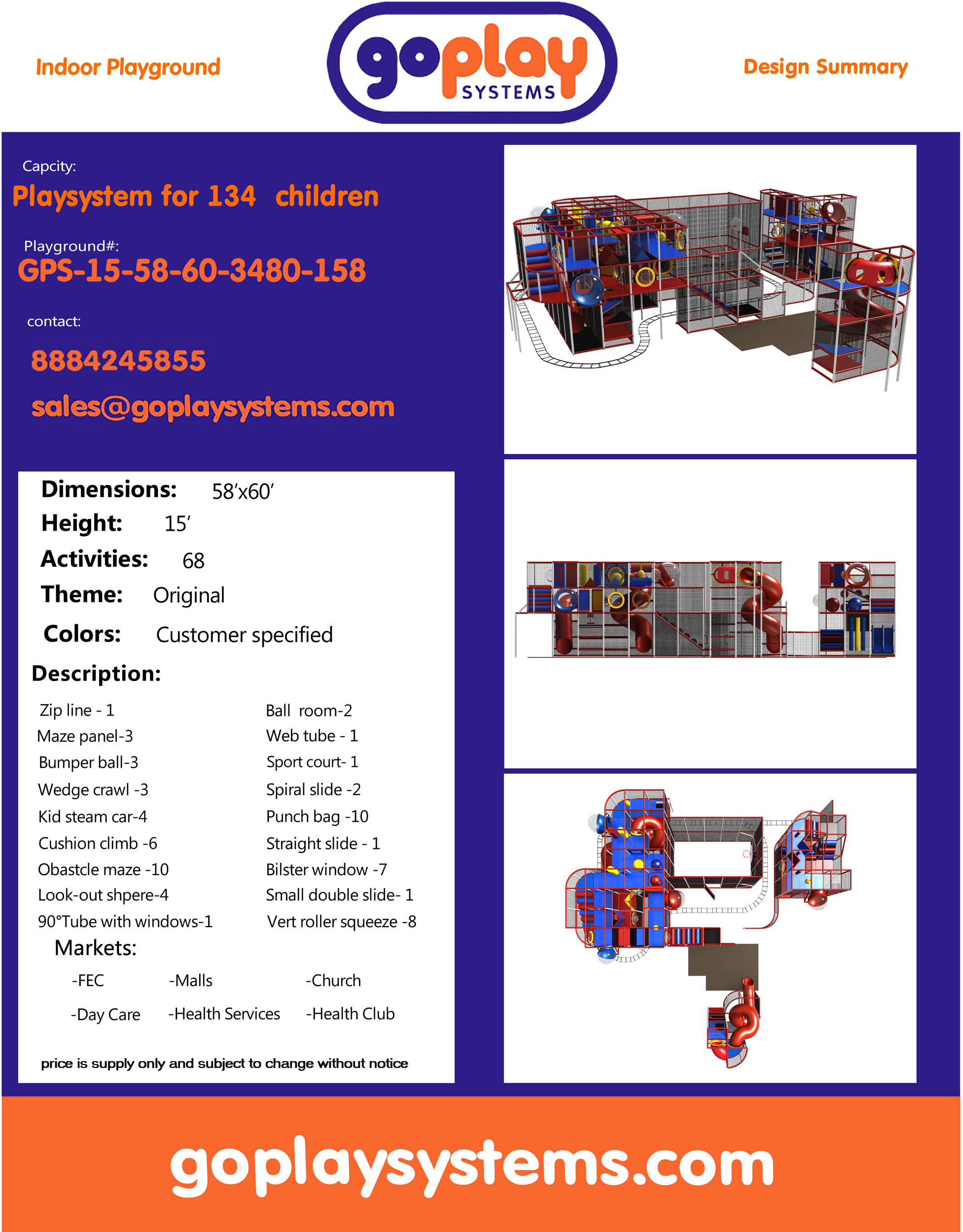 Compre equipo de juegos para interiores GPS158 – (tamaño del sistema de juegos para interiores) 15 pies de alto x 58 pies de ancho x 60 pies.