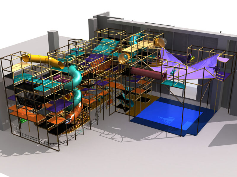 Zona de juegos interior popular para centros de entretenimiento familiar y parques de trampolines. Temática 2D y 3D disponible.