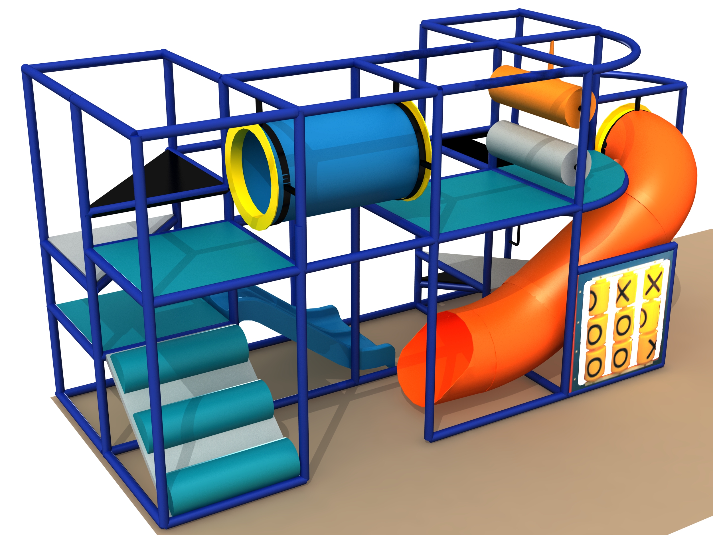 El parque infantil interior GPS1222 es un sistema de juego interior personalizado para niños de tres a doce años. La unidad de juego blando mide 2,4 m de ancho por 3 m de alto y 6,4 m de largo. El espacio mínimo requerido para este equipo de juego infantil es de aproximadamente 4,2 m de ancho, 3,6 m de techo y 8,2 m de largo. Superficie total: 15,7 m². Parque infantil interior de tamaño mediano.