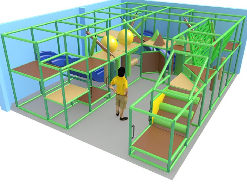 El parque infantil interior GPS1272 es un sistema de juego interior personalizado para niños de tres a doce años. La unidad de juego blando mide 7,6 m de ancho por 2,7 m de alto y 6,1 m de largo. El espacio mínimo requerido para este equipo de juego infantil es de aproximadamente 9,4 m de ancho, 3,3 m de techo y 8,9 m de largo. Superficie total: 47,6 m². Parque infantil interior de tamaño mediano.