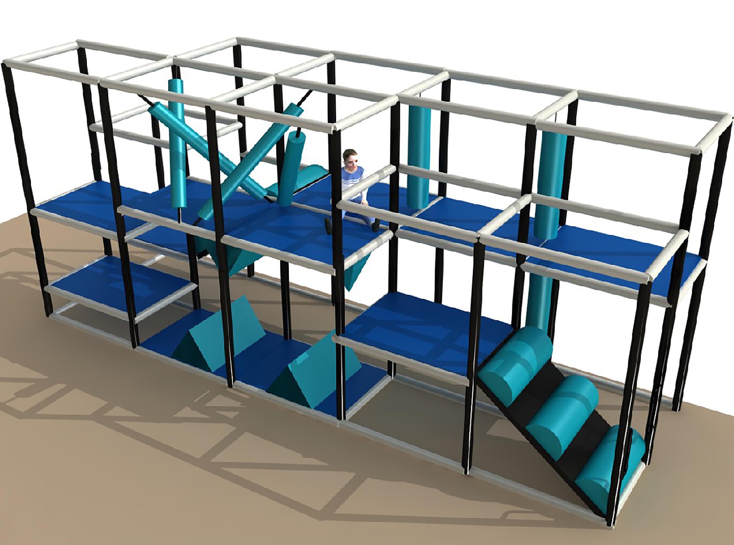 El parque infantil interior GPS1280 es un sistema de juego interior personalizado para niños de tres a doce años. La unidad de juego blando mide 6,1 m de ancho por 2,7 m de alto y 1,8 m de largo. El espacio mínimo requerido para este equipo de juego infantil es de aproximadamente 8,9 m de ancho, 3,3 m de techo y 3,6 m de largo. Superficie total: 11,1 m². Parque infantil interior de tamaño pequeño.