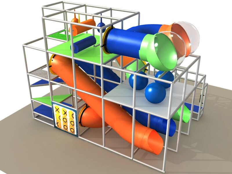 El parque infantil interior GPS1291 es un sistema de juego interior personalizado para niños de tres a doce años. La unidad de juego blando mide 4,2 m de ancho por 4,5 m de alto y 6,1 m de largo. El espacio mínimo requerido para este equipo de juego infantil es de aproximadamente 6,1 m de ancho, con un techo de 5,2 m y 8,9 m de largo. Superficie total: 26,1 m². Parque infantil interior de tamaño mediano.