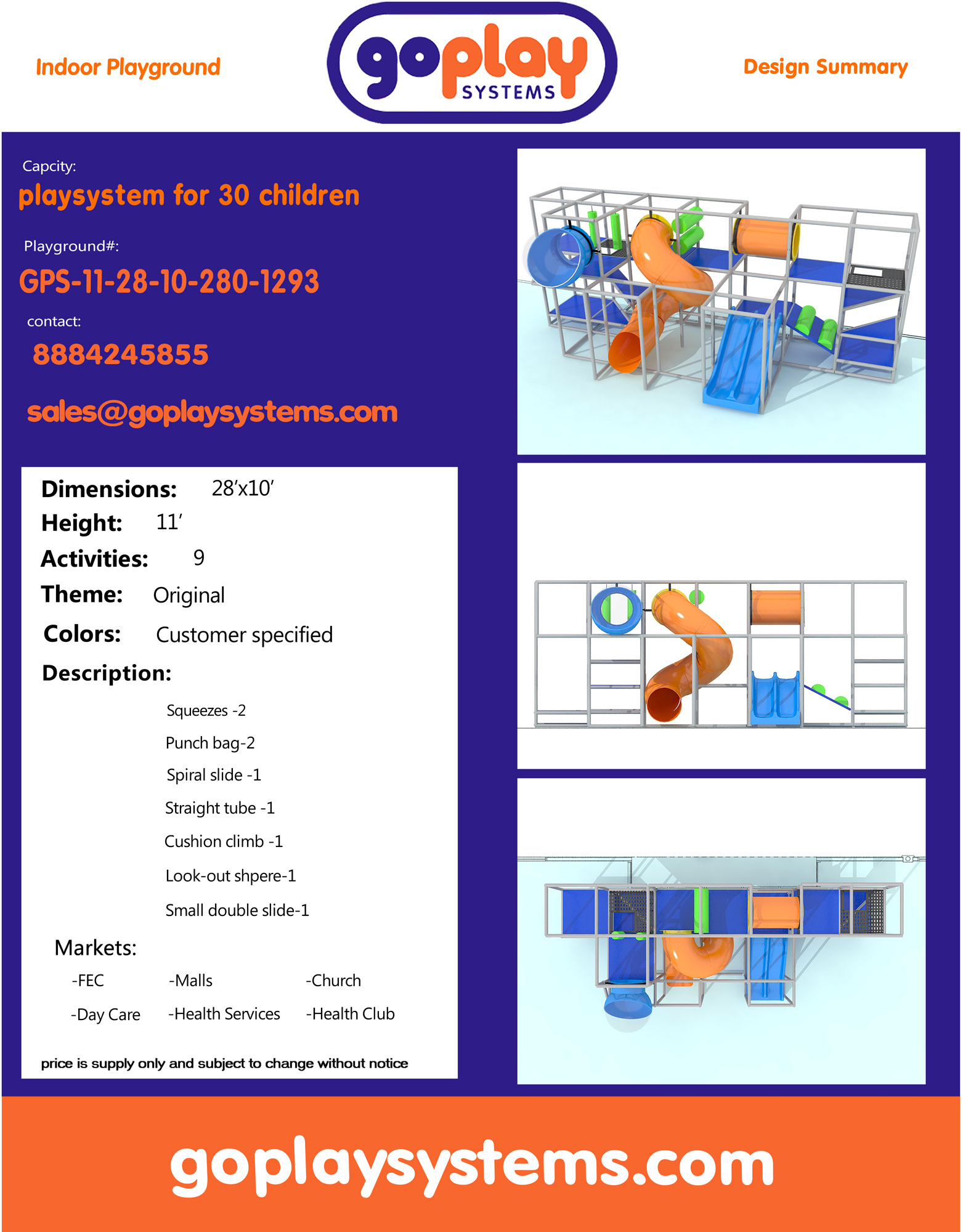 Parque infantil interior GPS1293 – 11 pies de alto x 28 pies de ancho x 10 pies.