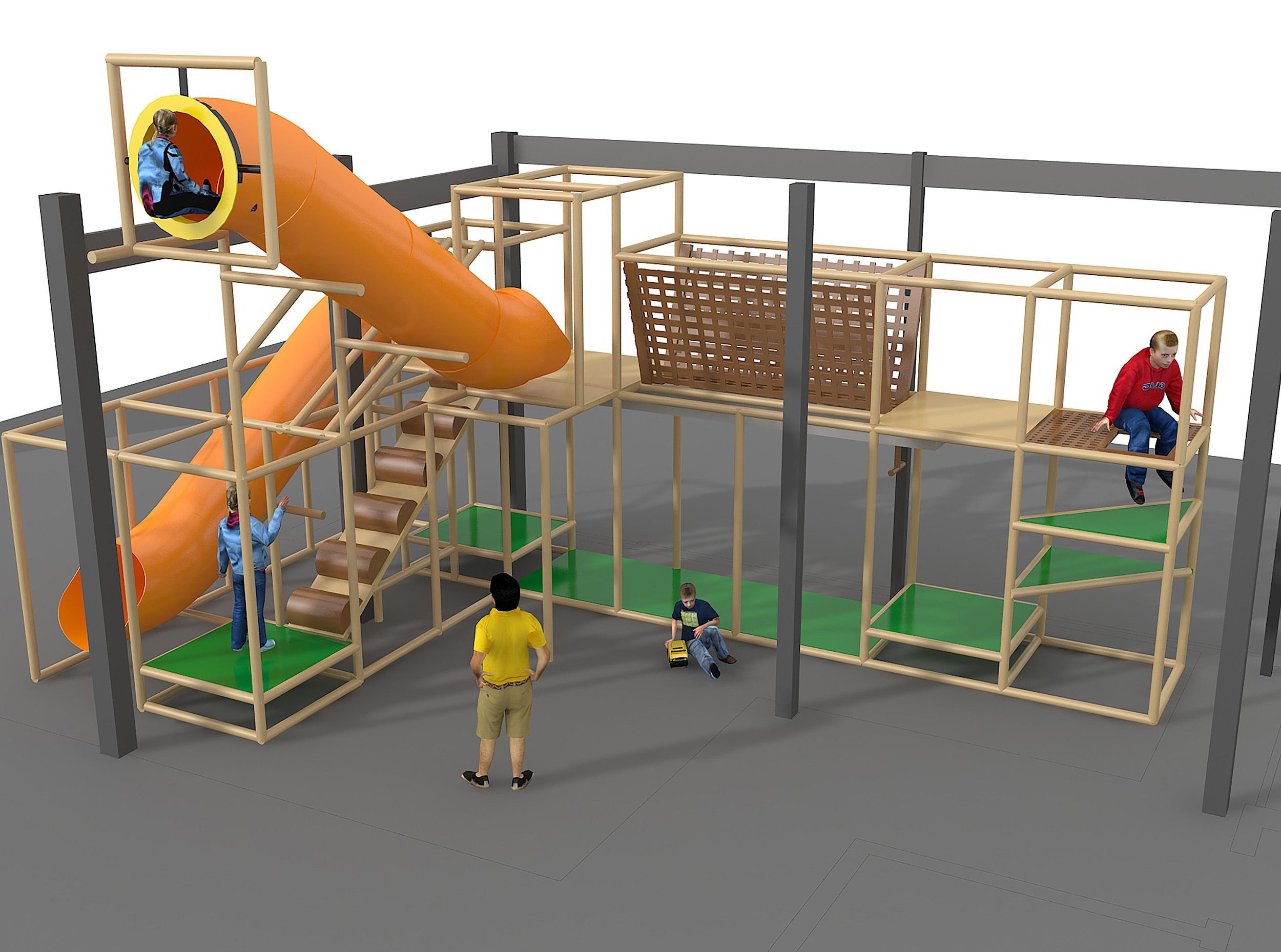 El parque infantil interior GPS1148 es un sistema de juego blando modular diseñado a medida para niños de forma segura. El sistema mide 8,5 m de ancho por 4,2 m de alto y 4,8 m de largo. El espacio interior mínimo requerido para este parque infantil es de aproximadamente 10,3 m de ancho, 4,8 m de techo y 6,7 m de largo. Parque infantil interior de tamaño mediano.