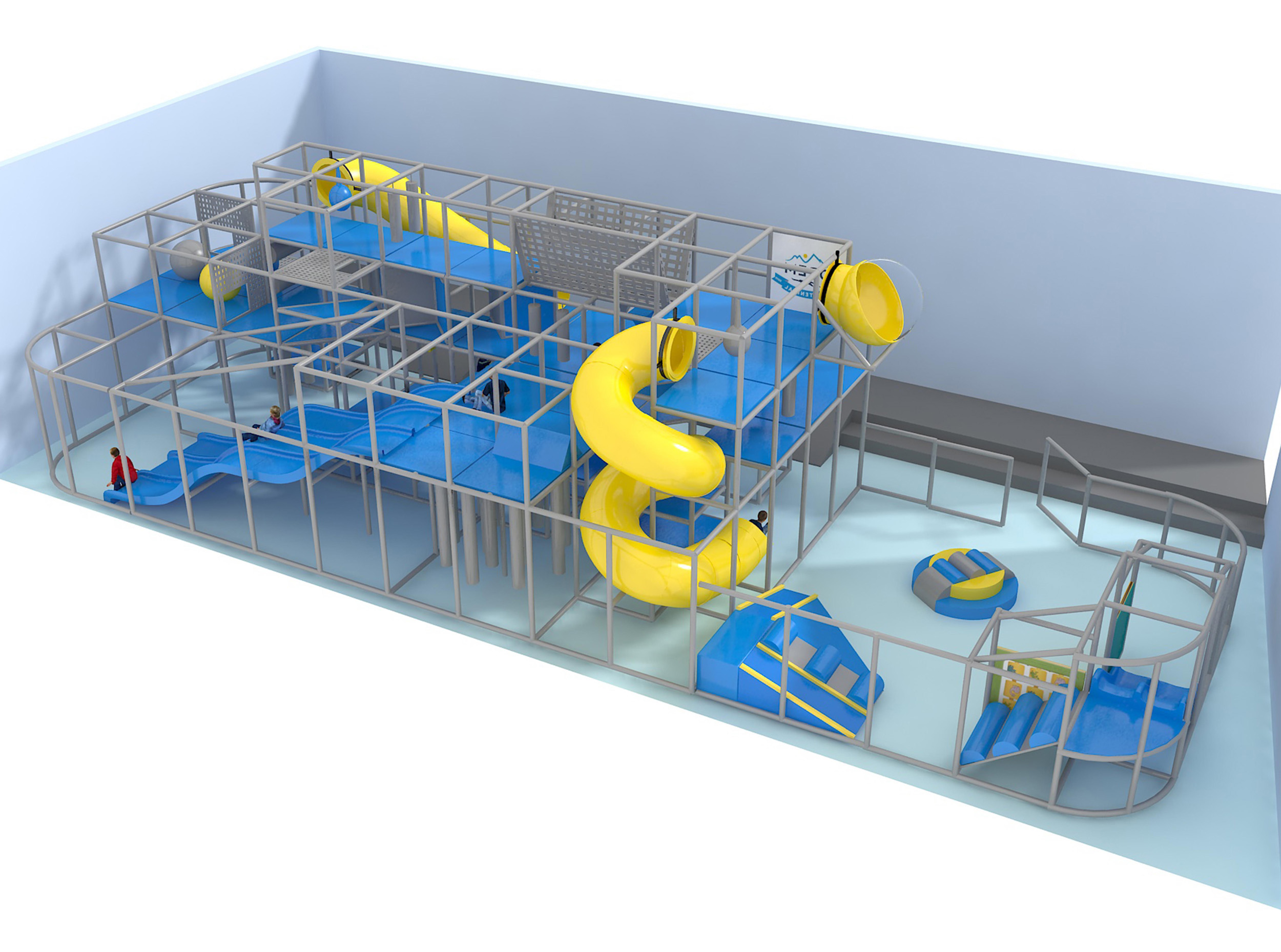 El parque infantil interior GPS919 es un sistema de juego blando modular, diseñado a medida y desarrollado para niños de forma segura. El sistema mide 18 m de ancho por 4,5 m de alto y 6 m de largo. El espacio interior mínimo requerido para este parque infantil es de aproximadamente 20 m de ancho, con un techo de 5,2 m y 8 m de largo. Parque infantil interior de tamaño mediano.