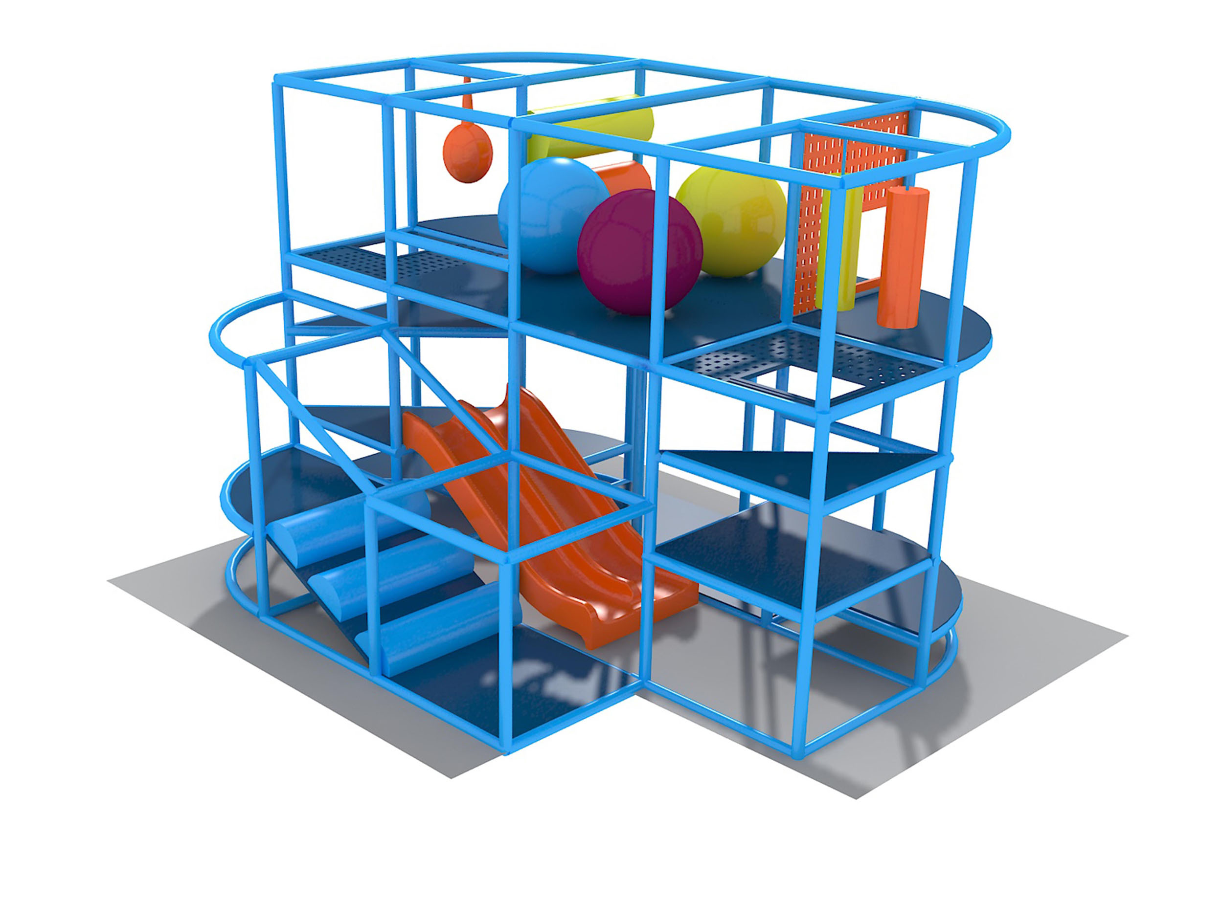 El parque infantil interior GPS930 es un sistema modular de juego blando diseñado a medida para niños de 3 a 12 años de forma segura. El sistema mide 3,35 m de alto x 3,66 m de ancho x 4,88 m.