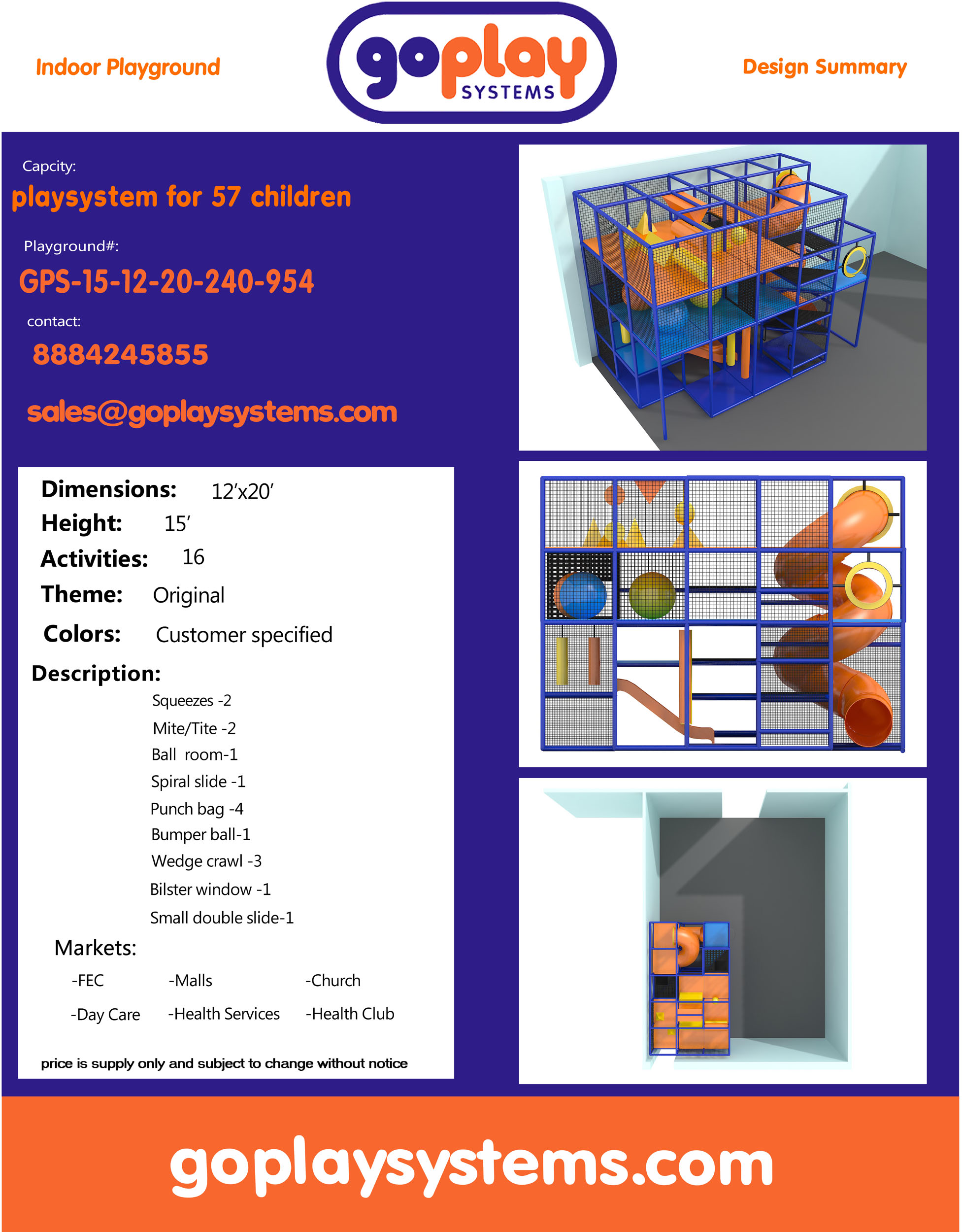 Parque de juegos interior GPS954 – (Tamaño del sistema de juego interior) – 15 pies de alto x 12 pies de ancho x 20 pies.