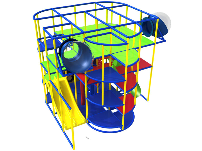El parque infantil interior GPS981 es un sistema de juego blando modular diseñado a medida para niños de forma segura. El sistema mide 4,8 m de ancho por 4,5 m de alto y 4,8 m de largo. El espacio interior mínimo requerido para este parque infantil es de aproximadamente 6,7 m de ancho, 5,2 m de techo y 6,7 m de largo. Parque infantil interior de tamaño mediano.