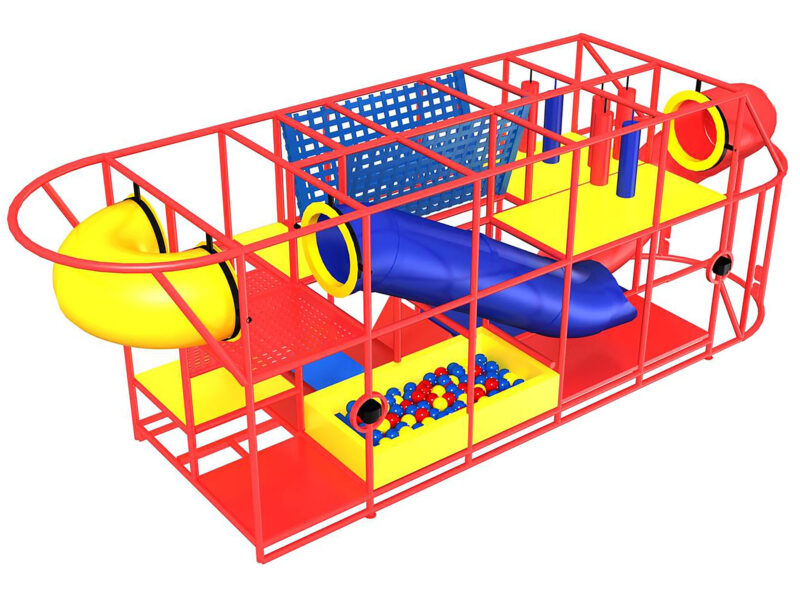 Compre o equipamento de recreação para ambientes internos GPS267 – (dimensões do equipamento de recreação para ambientes internos) 3 metros de altura x 9 metros de largura x 2,4 metros de profundidade.