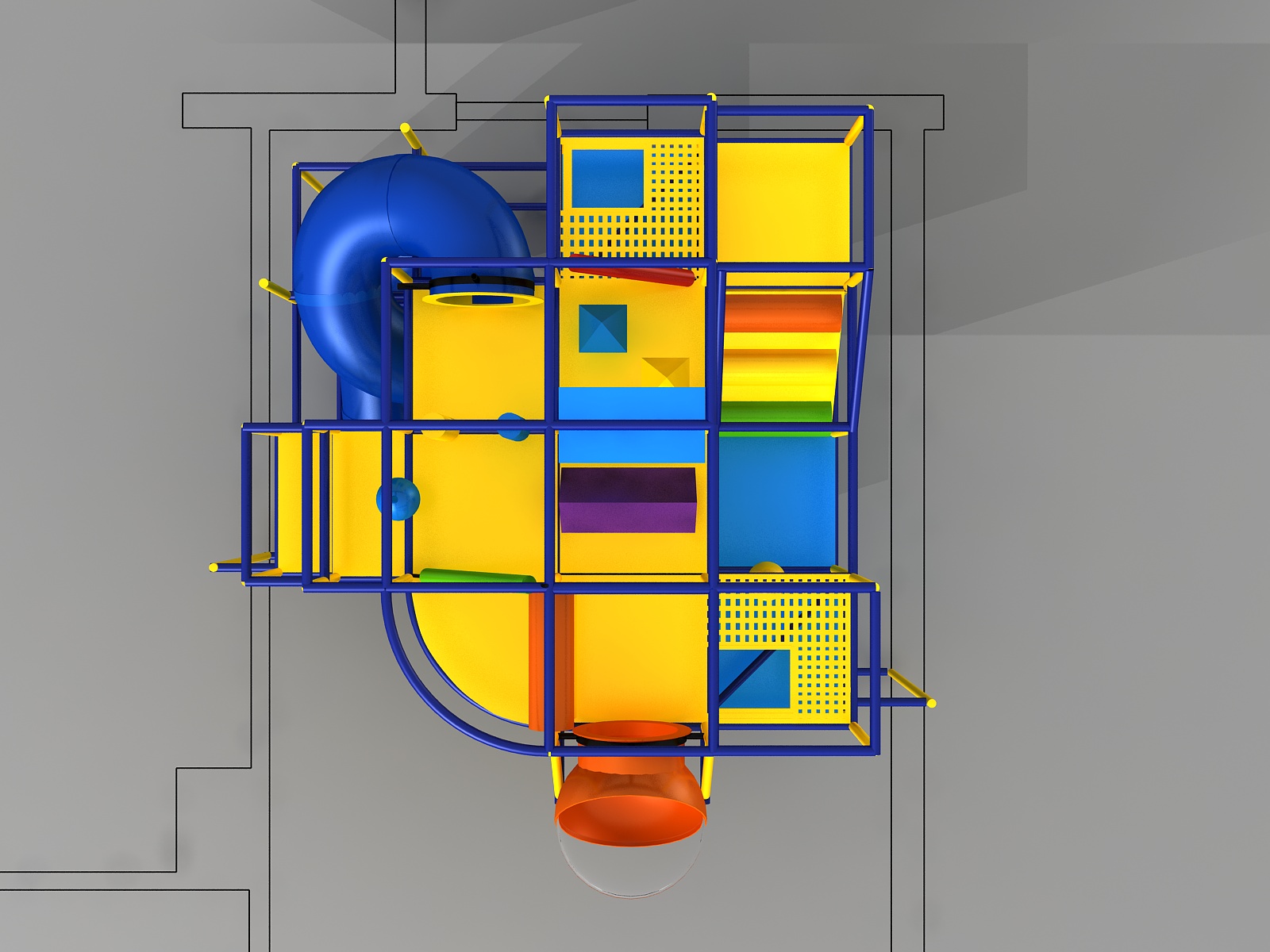 Parque infantil coberto GPS 1249 – 4,8 m (altura) x 4,5 m (largura) x 4,8 m (comprimento)