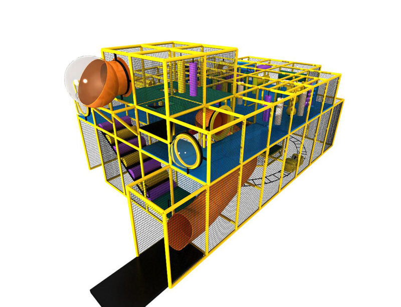Compre o equipamento de recreação para ambientes internos GPS121 – (dimensões do equipamento de recreação para ambientes internos) 4,5 metros de altura x 6 metros de largura x 9,7 metros de comprimento.