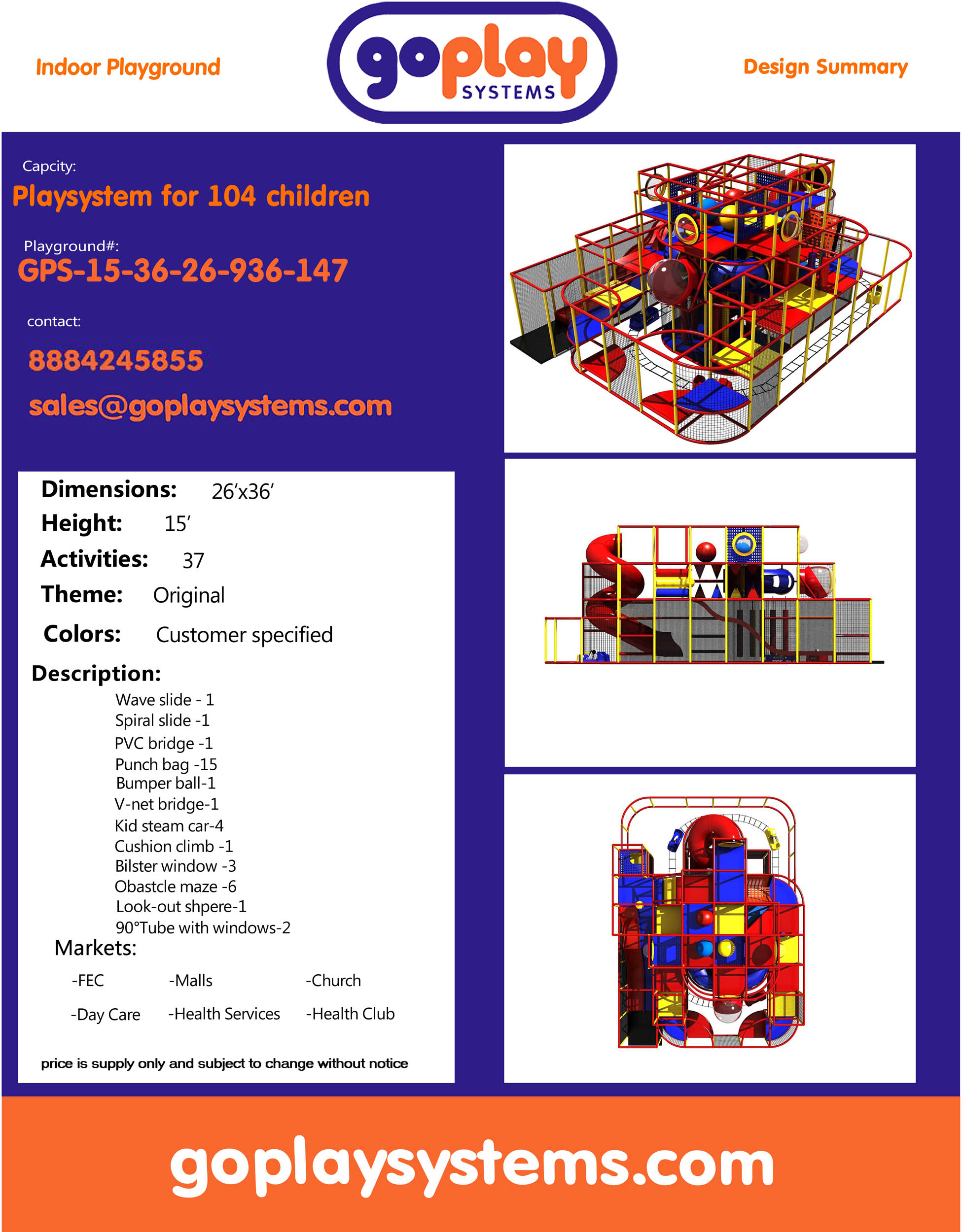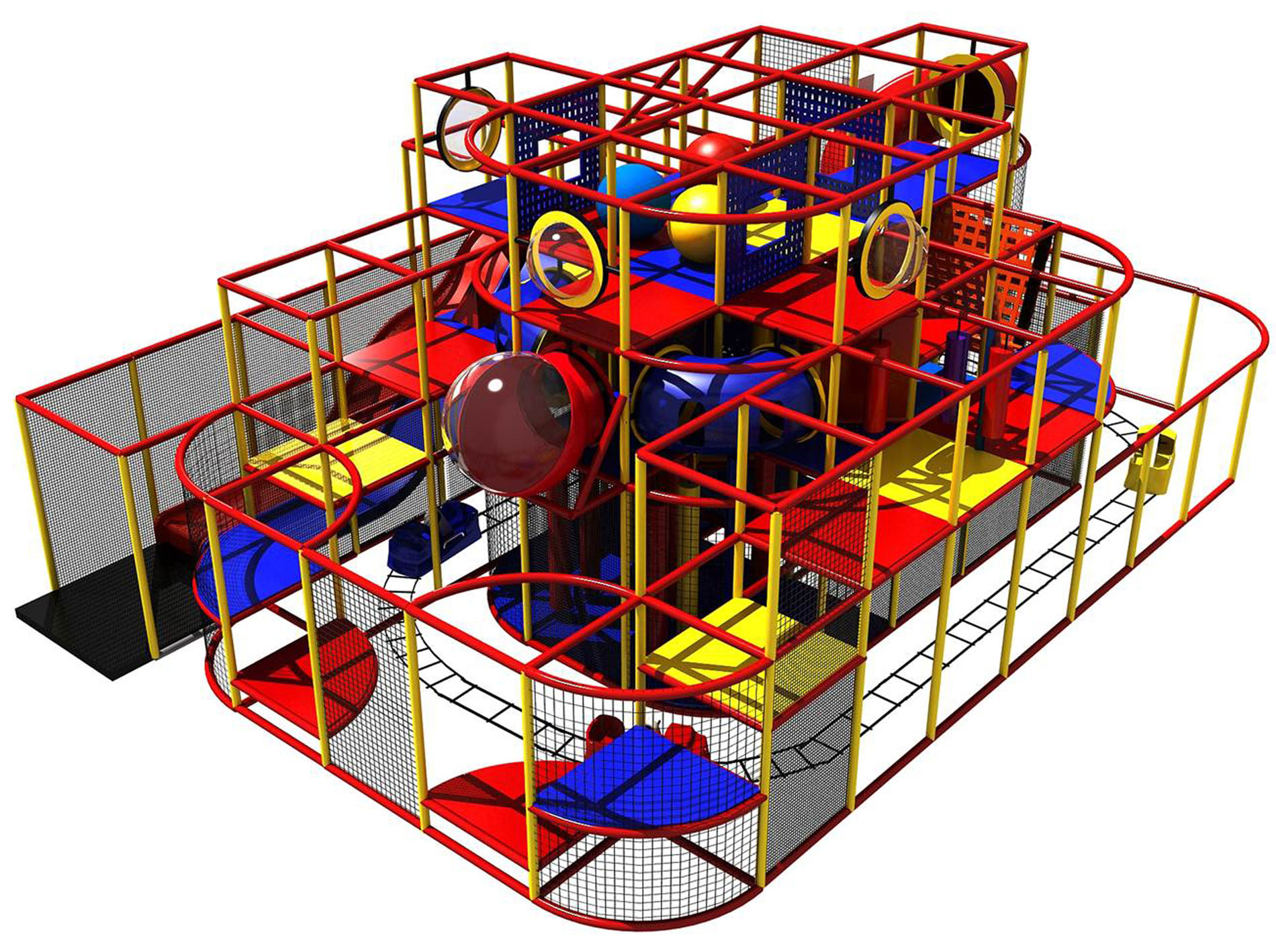 Compre o equipamento de recreação para ambientes internos GPS147 – (dimensões do equipamento de recreação para ambientes internos) 4,5 metros de altura x 11 metros de largura x 7,9 metros de profundidade.