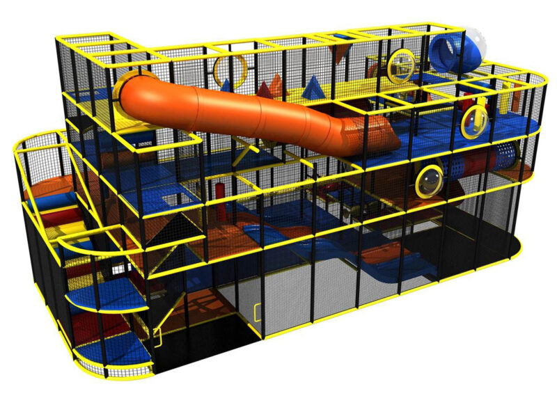 O parque infantil interno GPS164 é um sistema de recreação interno feito sob medida para crianças de três a doze anos. A área de recreação macia mede 6 metros de largura por 5,8 metros de altura e 12 metros de comprimento. O espaço mínimo necessário para este parque infantil coberto é de aproximadamente 8 metros de largura, 6,4 metros de altura e 14 metros de comprimento. Parque infantil coberto de tamanho médio. Este parque infantil é ideal para edifícios ou armazéns com tetos altos.