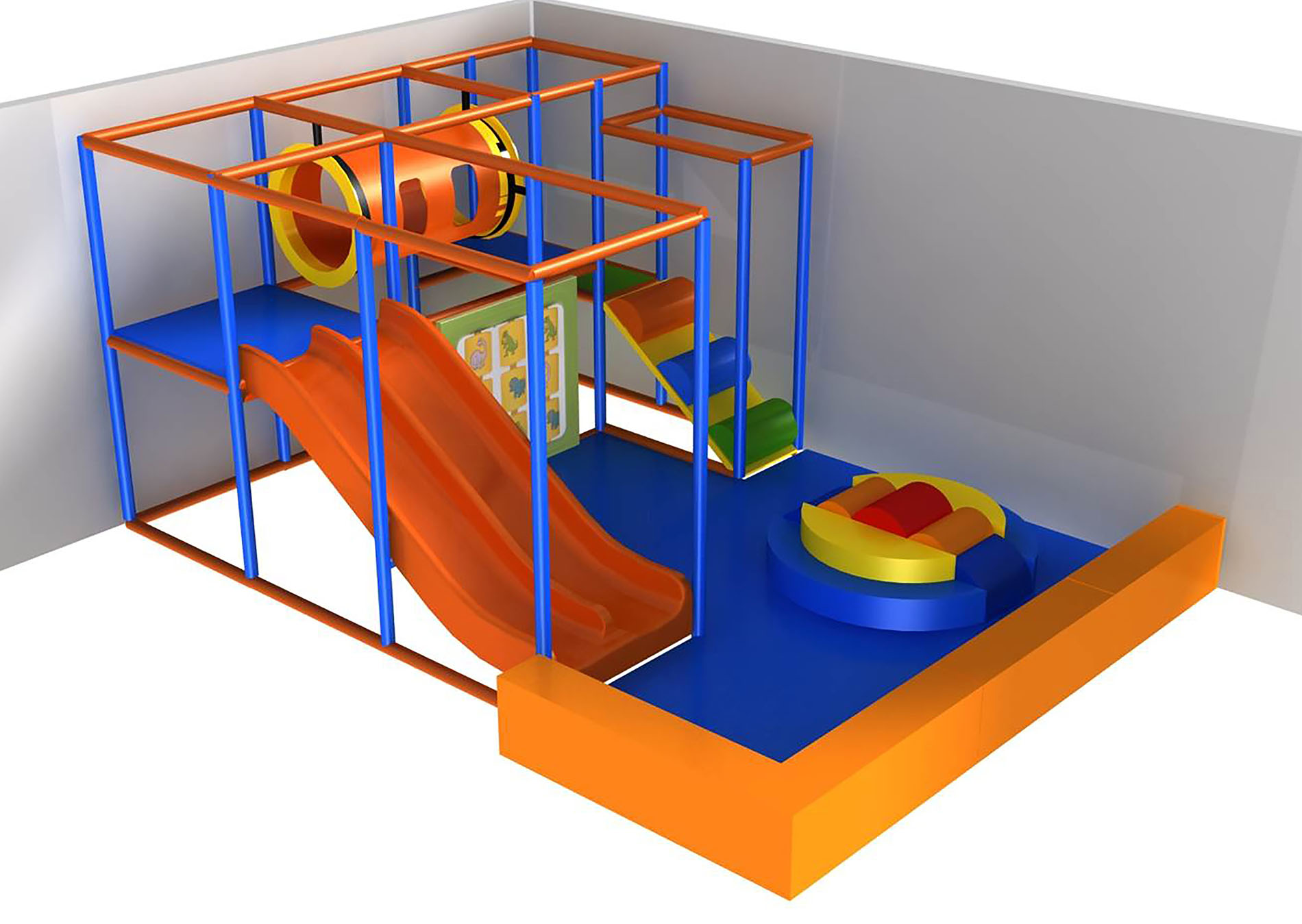 Pequeno parque infantil coberto ideal para academias, YMCAs, consultórios odontológicos, igrejas e creches.