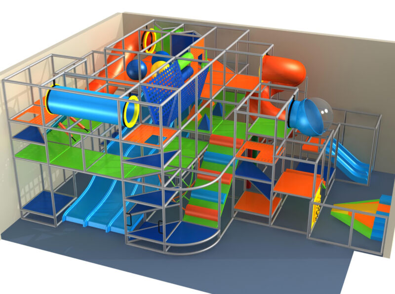 O parque infantil interno GPS165 é um sistema de brinquedos macios modular, projetado sob medida para acomodar as crianças com segurança. O sistema de brinquedos mede 35 pés de largura por 15 pés de altura e 24 pés de comprimento. O espaço interno mínimo necessário para este parque infantil é de aproximadamente 41 pés de largura, com pé-direito de 17 pés e 30 pés de comprimento. Parque infantil interno de tamanho médio.