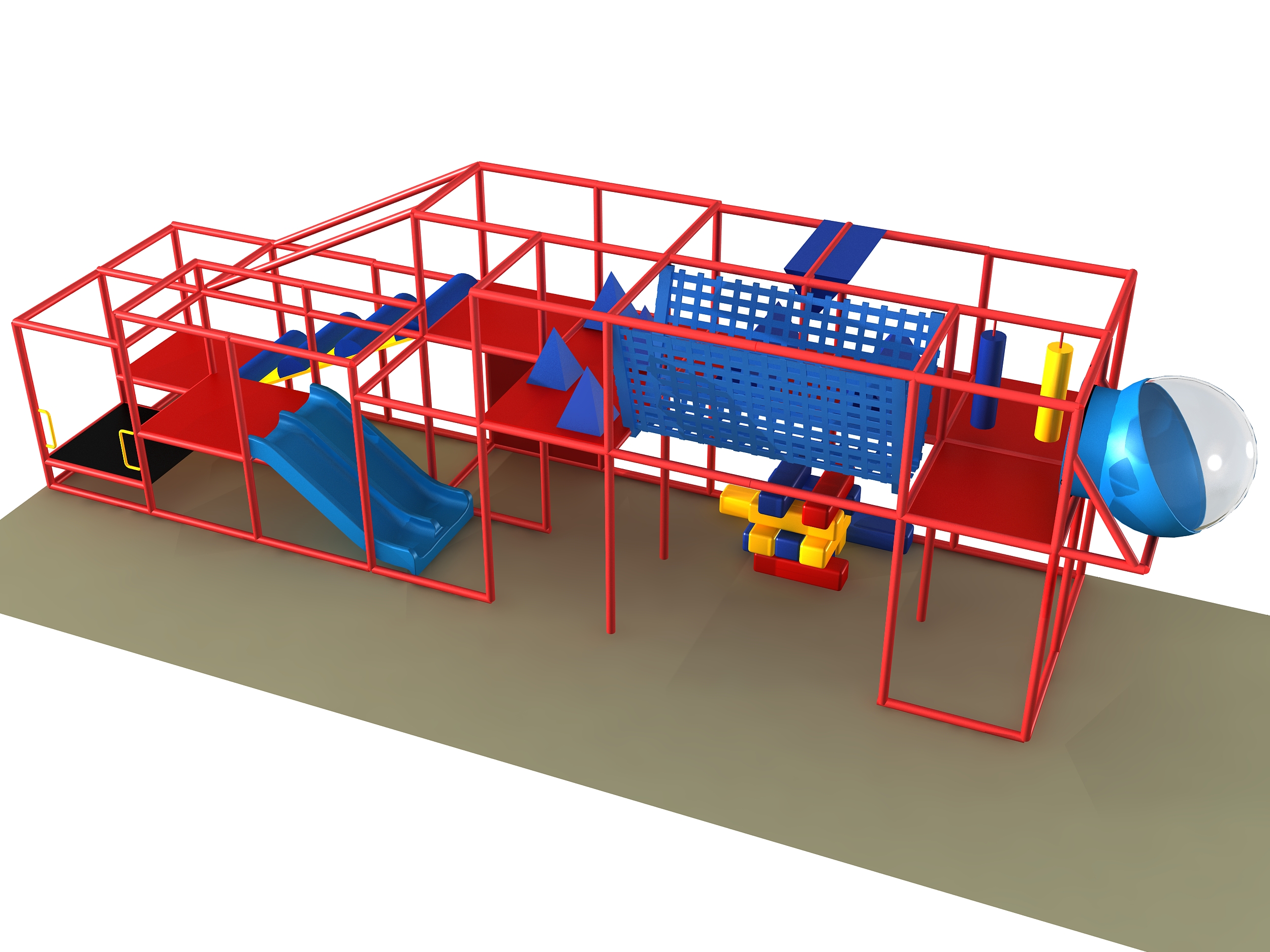 O parque infantil coberto GPS1237 é um sistema de recreação coberto personalizado para crianças de três a doze anos. A unidade de recreação com piso macio mede 2,4 m de largura por 3 m de altura e 9,7 m de comprimento. O espaço mínimo necessário para este equipamento de recreação infantil é de aproximadamente 4,2 m de largura, 3,6 m de altura e 11,5 m de comprimento. Área total: 23,6 m². Parque infantil coberto de tamanho médio.
