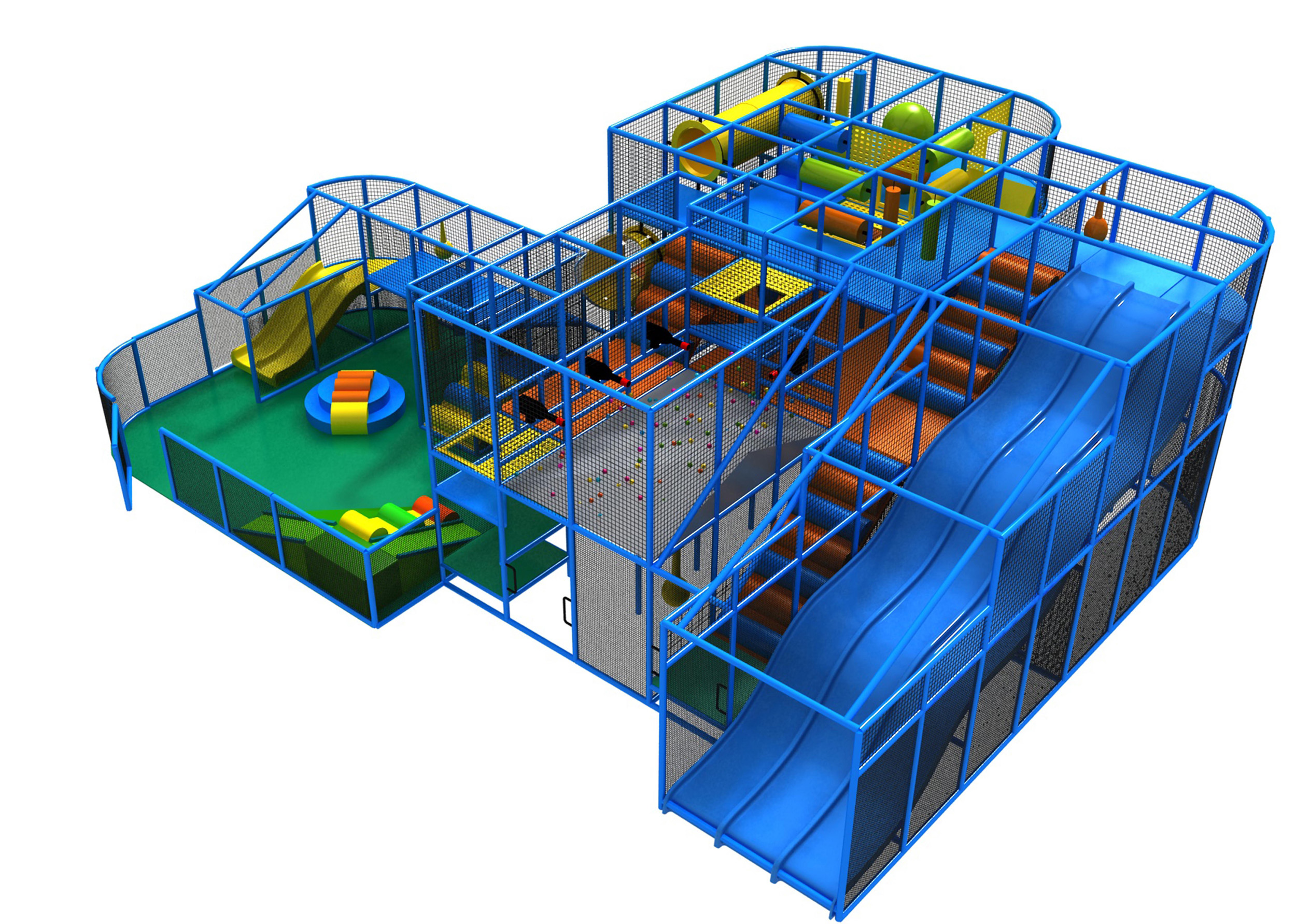 O parque infantil coberto GPS818 é um sistema de brinquedos macios modular, projetado sob medida para garantir a segurança das crianças. O sistema mede 11,8 m de largura por 4,5 m de altura e 14,9 m de comprimento. O espaço interno mínimo necessário para este parque infantil é de aproximadamente 13,8 m de largura, 5,2 m de altura e 16,7 m de comprimento. Parque infantil interno de tamanho médio.