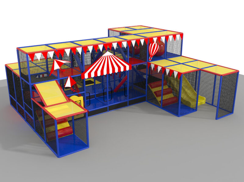 Parque infantil coberto GPS986 – 3,6 metros de altura x 8,5 metros de largura x 7,3 metros.