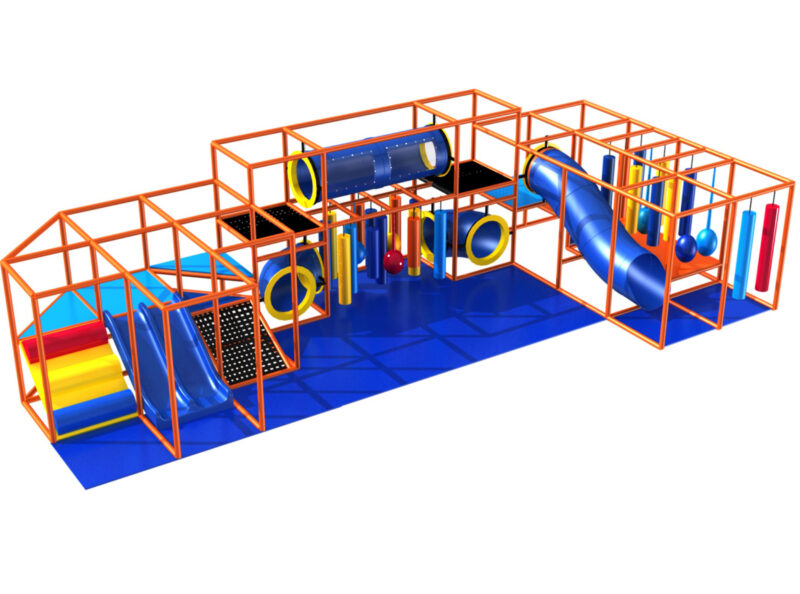 O parque infantil coberto GPS987 é um sistema modular de brinquedos macios projetado sob medida. O sistema mede 2,7 m de altura x 11,9 m de largura x 4,8 m.