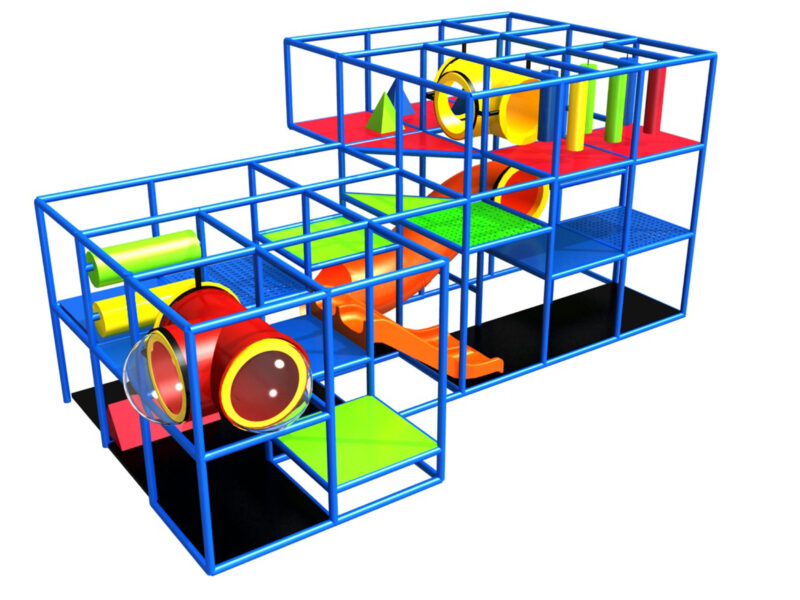 O parque infantil coberto GPS997 é um sistema modular de brinquedos macios projetado sob medida. O sistema mede 3,35 m de altura x 7,35 m de largura x 3,65 m.